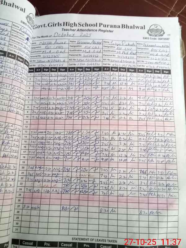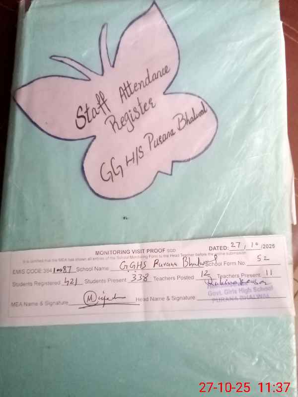 | EMIS Code: 38410087 | Name of School: GGHS PURANA BHALWAL | |||