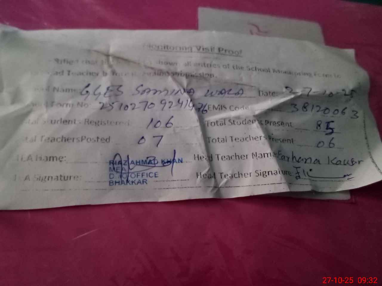 | EMIS Code: 38120063 | Name of School: GGES SAMINA WALA | |||