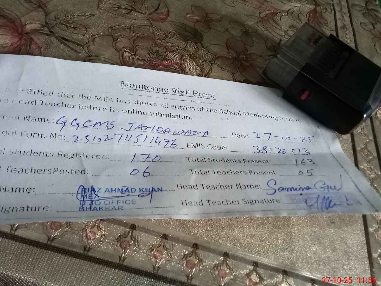 | EMIS Code: 38120513 | Name of School: GGCMS JANDAN WALA | |||