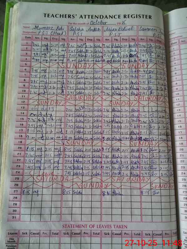 | Remarks (Use Separate Page if Required): Head teacher is absent without leave no letter available | |||||