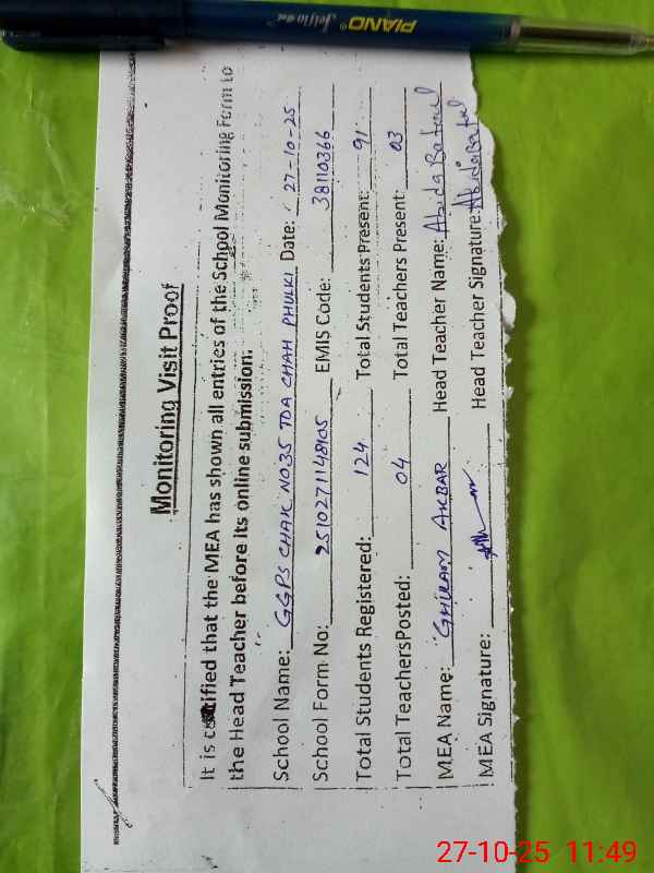| EMIS Code: 38110366 | Name of School: GGPS CHAK NO.35/TDA CHAH PHULKI | |||