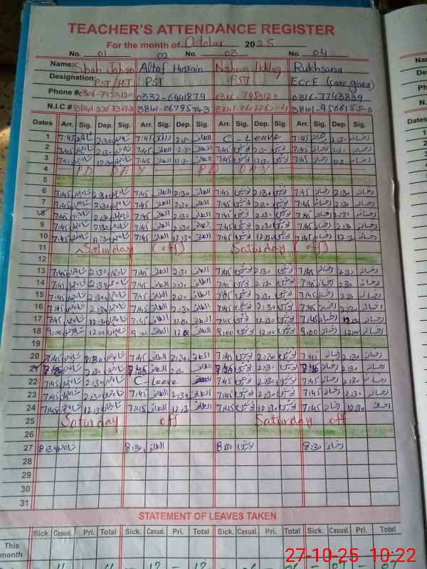 | Name: Sh**** Ja**** Designation: (School Headmaster's/Headmistress's) PST Phone/Cell Number: 03**** |
