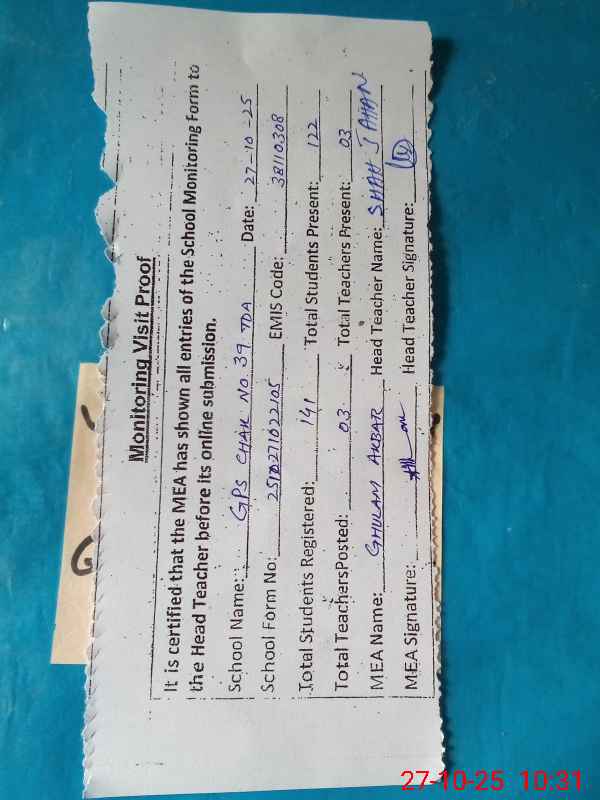 | EMIS Code: 38110308 | Name of School: GPS CHAK NO. 39 TDA | |||