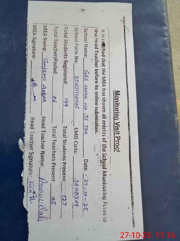 | EMIS Code: 38110309 | Name of School: GES CHAK NO 35 TDA | |||