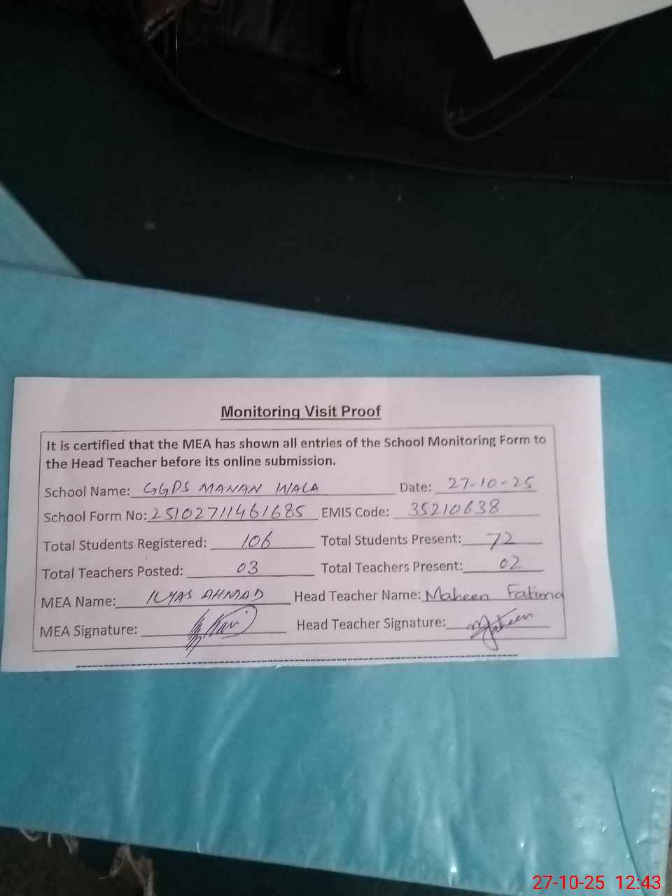 | EMIS Code: 35210638 | Name of School: GGPS MANAN WALA BADIAN ROAD | |||
