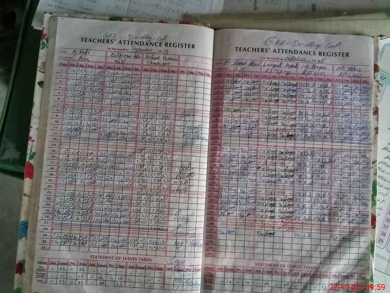 | CNIC | Full Name | Designation | R/C | Absence During Last Calender Month |
