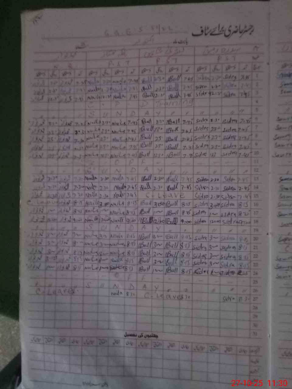 | CNIC | Full Name | Designation | R/C | Absence During Last Calender Month |