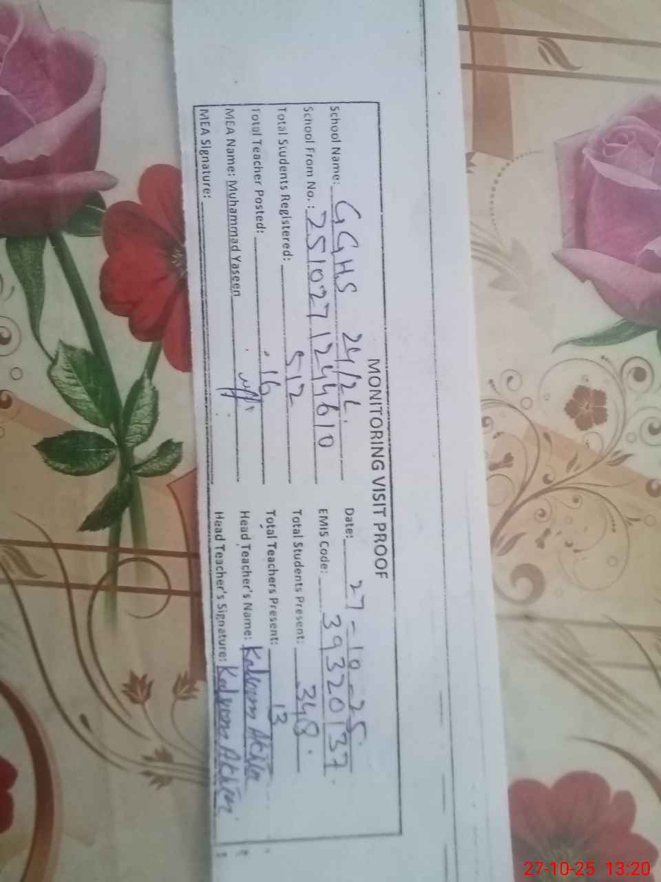 | EMIS Code: 39320137 | Name of School: GGHS CHAK NO. 24/2.L | |||