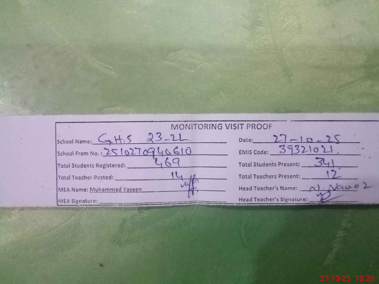 | EMIS Code: 39321021 | Name of School: GHS CHAK 23/2-L | |||