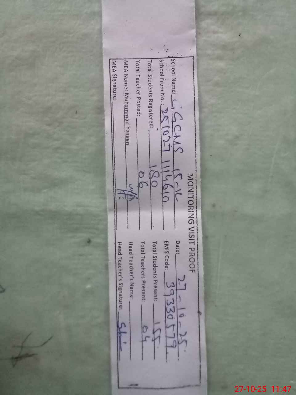 | EMIS Code: 39330579 | Name of School: GGCMS CHAK NO. 15/1-L | |||