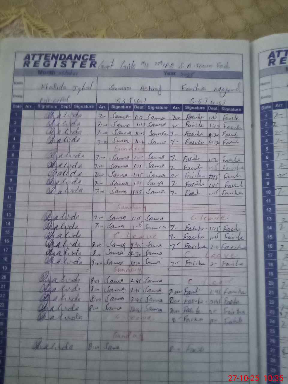 | 33**** | Fa**** Ra**** | C | Regular | 0 | 0 | 26 | 0 | 0 | 0 | 0 | 0 | 0 | Absent (Un-Authorized) |