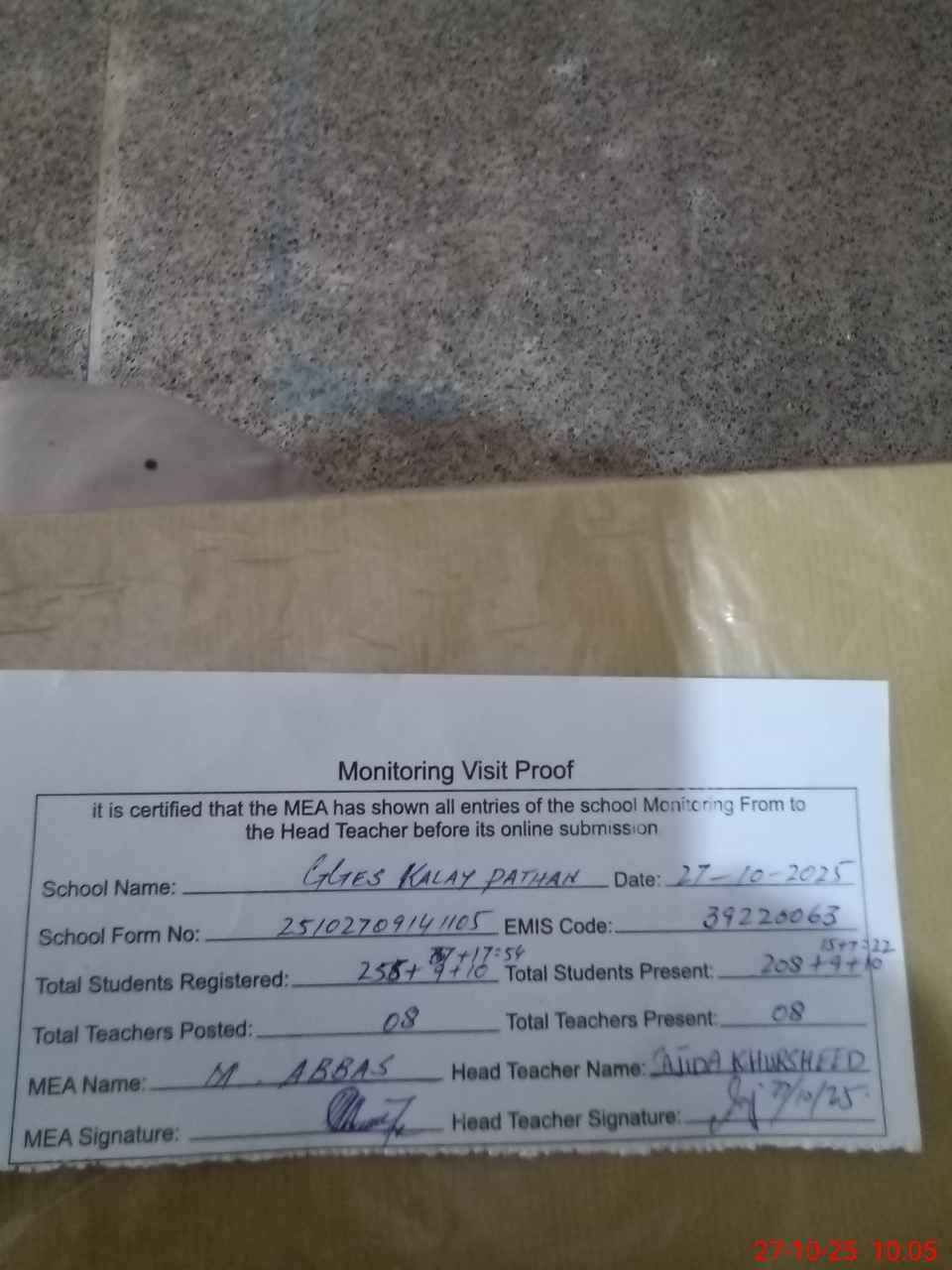 | EMIS Code: 39220063 | Name of School: GGES KALAY PATHAN | |||