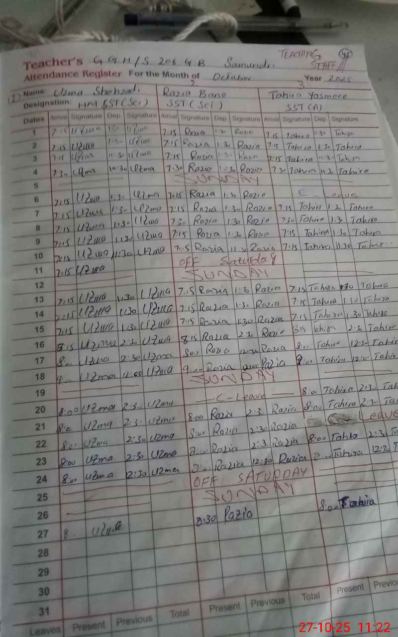 | CNIC | Full Name | Designation | R/C | Absence During Last Calender Month |