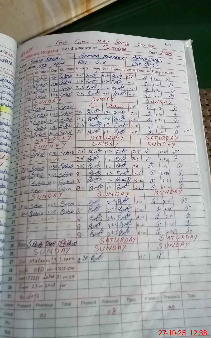 | 33**** | So**** Ra**** | PST | Regular | 9 | 0 | 0 | 9 | 0 | 0 | 0 | 0 | 0 | Maternity |