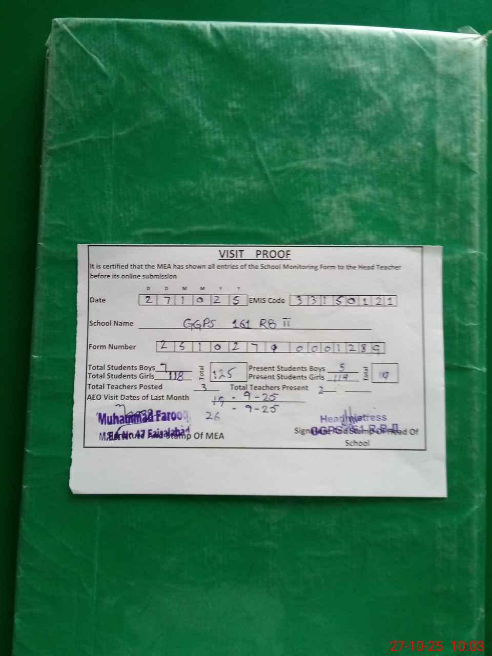 | EMIS Code: 33150121 | Name of School: GGPS CHAK 161 RB II | |||