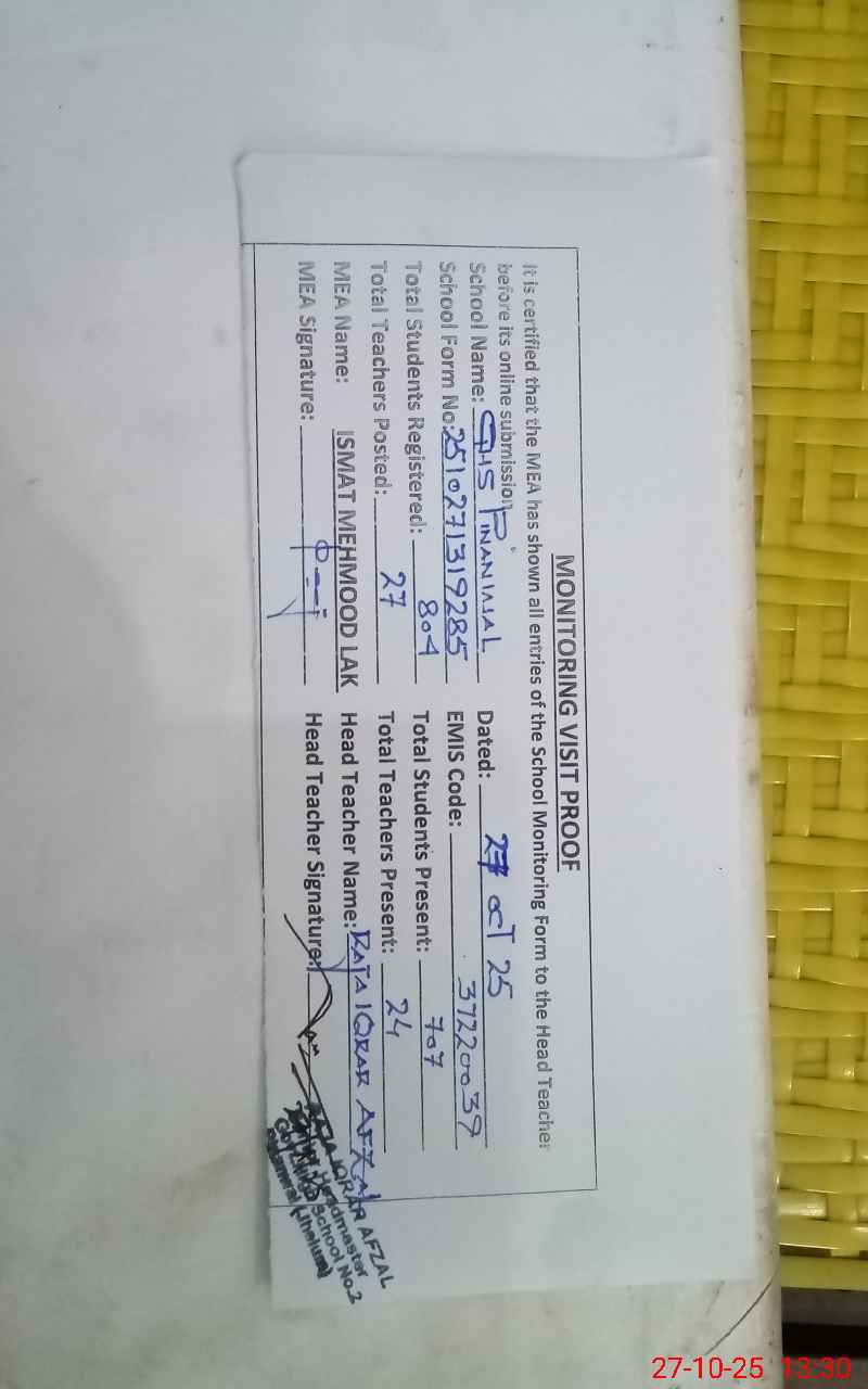 | EMIS Code: 37220039 | Name of School: GHS PINAN WAL No. 2 | |||