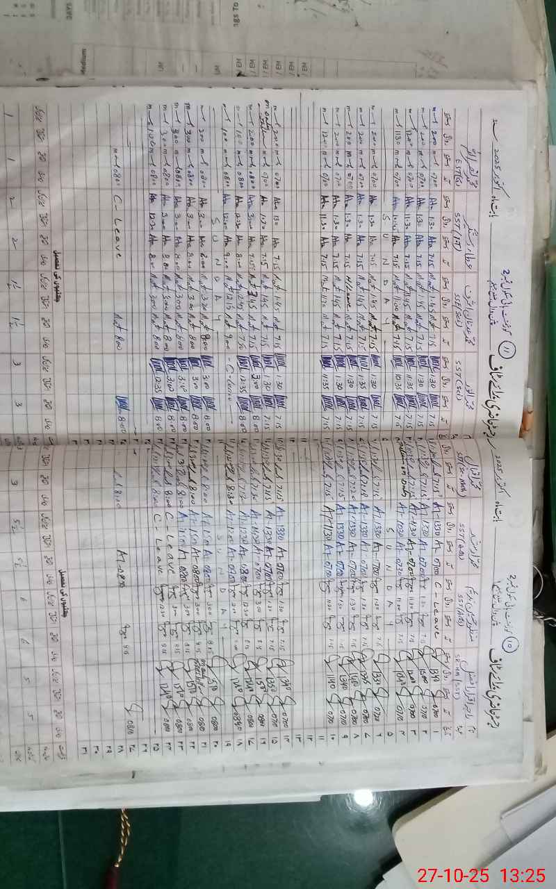 | CNIC | Full Name | Designation | R/C | Absence during last cal. month |