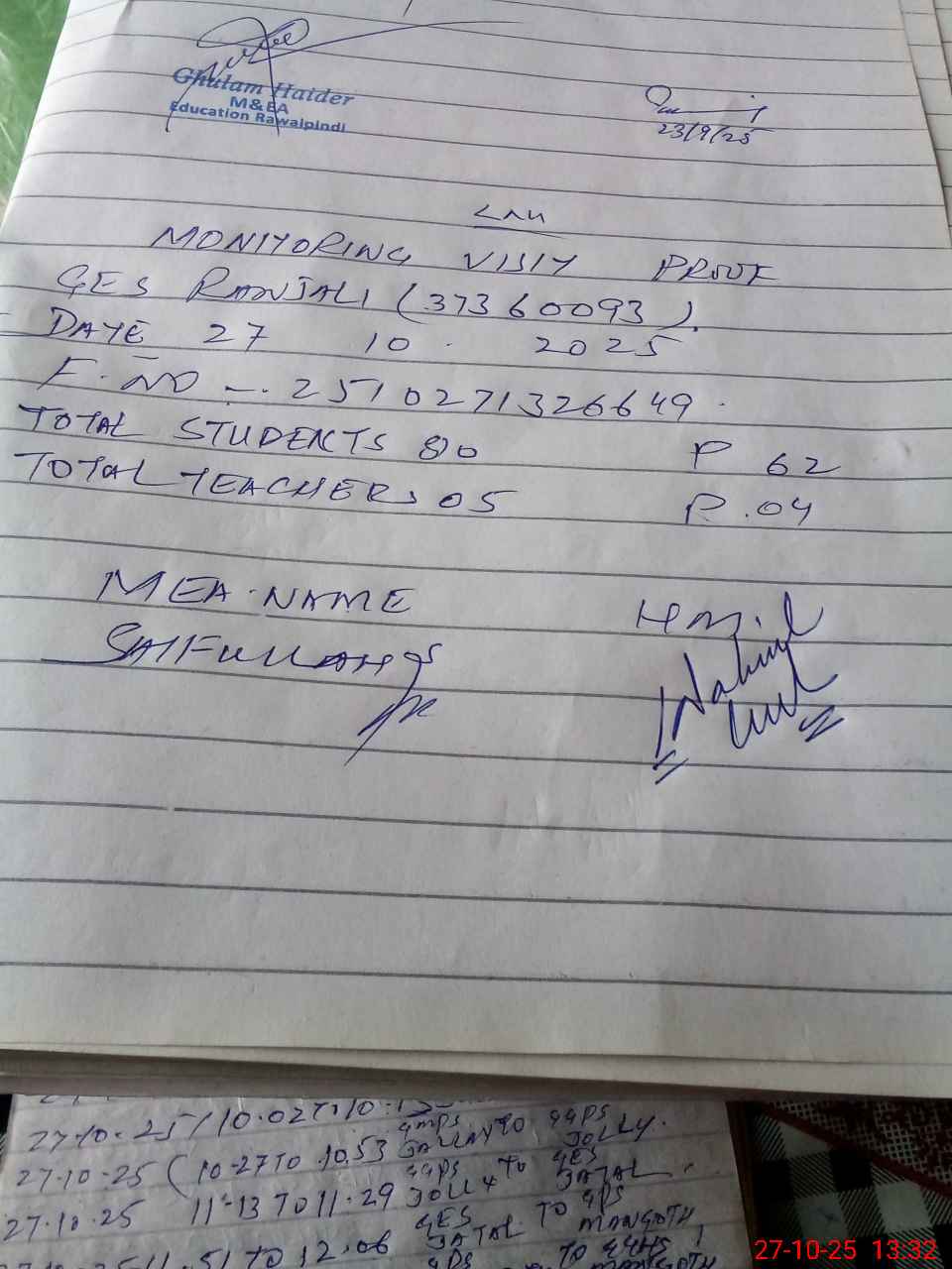 | Monitoring Date: 27-10-2025 | Start Time: 27-10-2025 01:14 PM | End Time: 27-10-2025 01:32 PM | Name of MEA: Sa**** | |