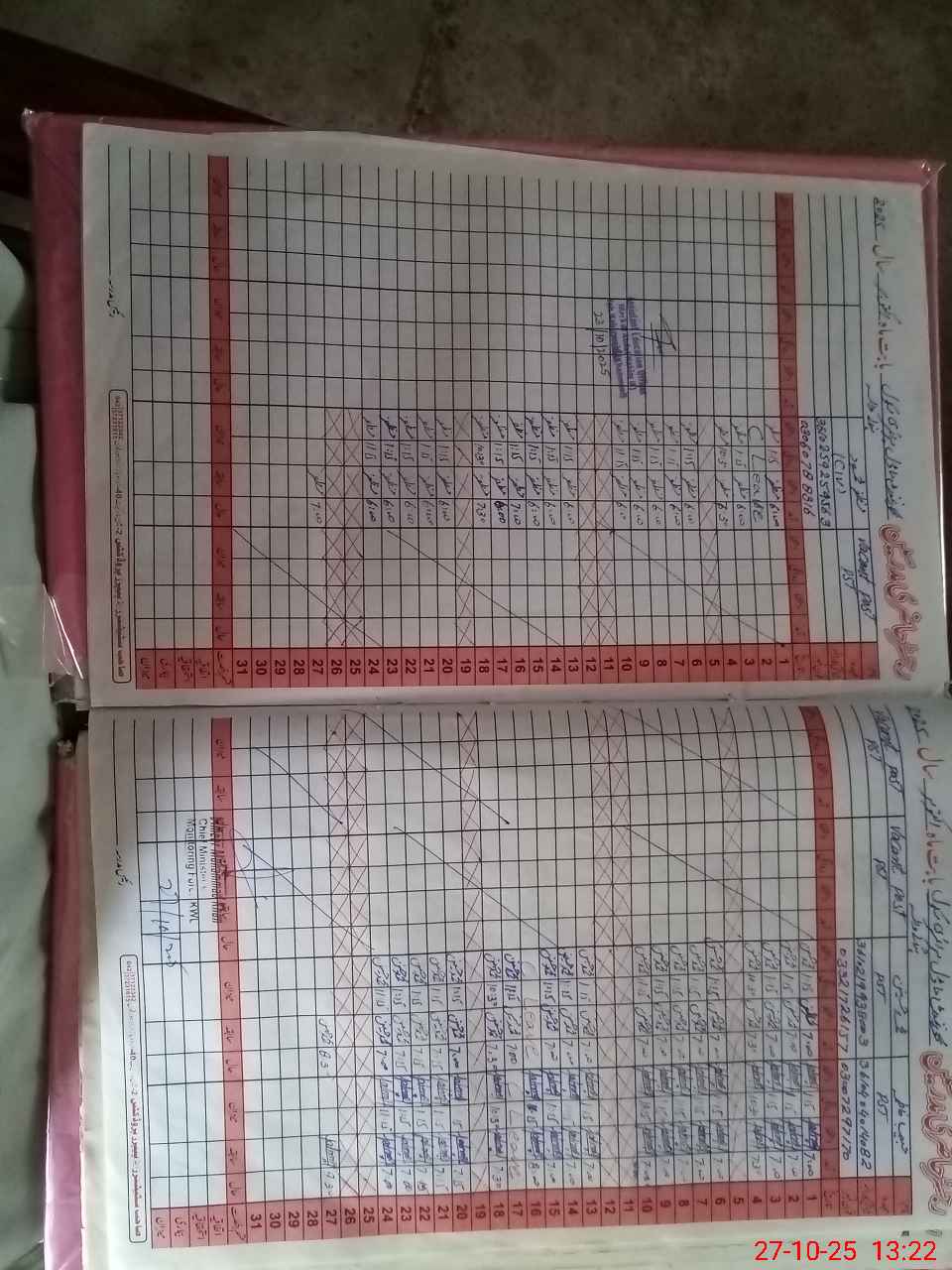 | CNIC | Full Name | Designation | R/C | Absence during last cal. month |