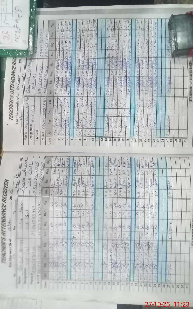 | CNIC | Full Name | Designation | R/C | Absence During Last Calender Month |