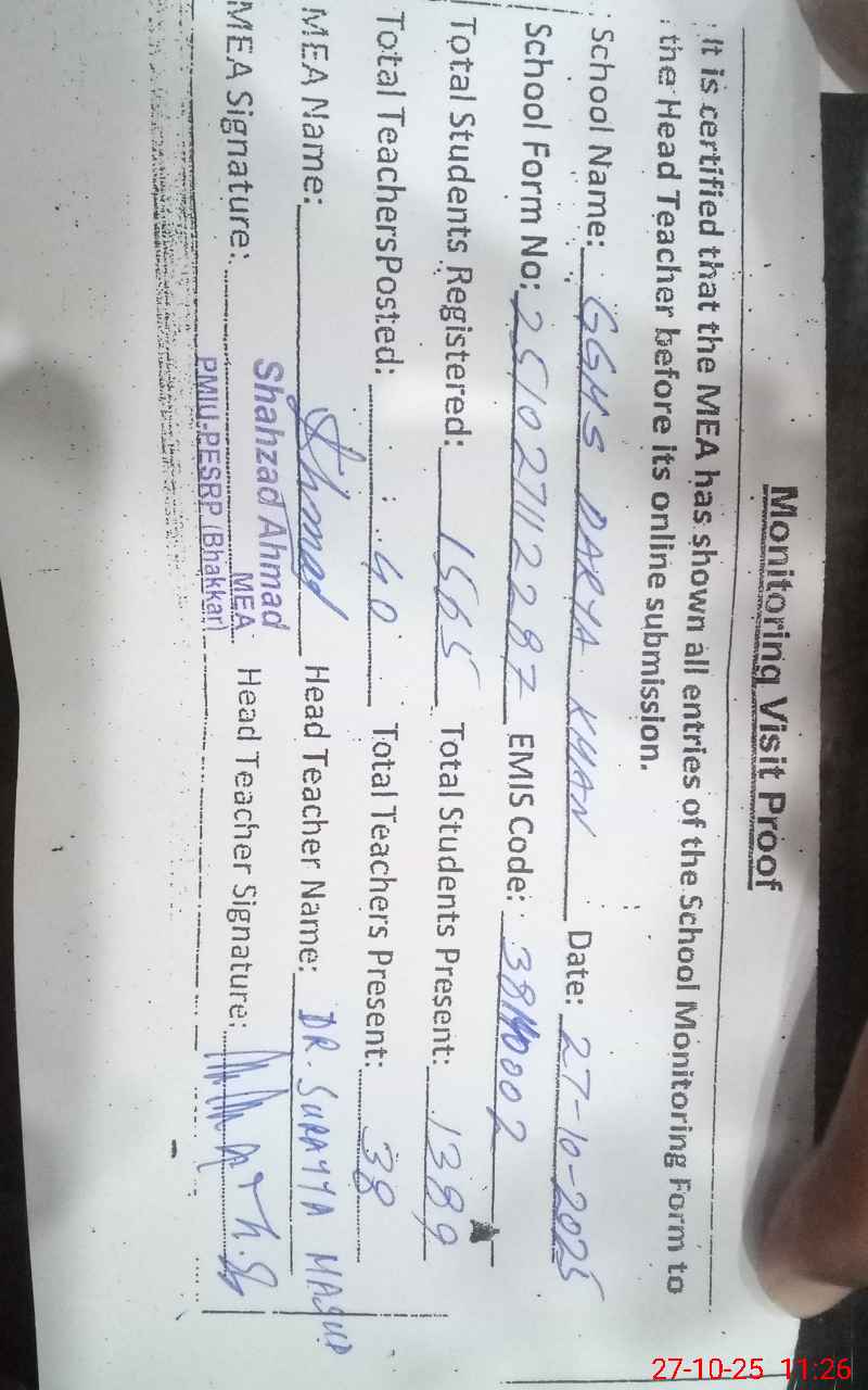 | EMIS Code: 38140002 | Name of School: GGHS DARYA KHAN | |||