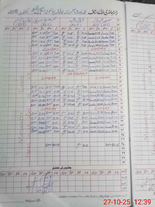 | 37**** | Fa**** As**** | PST | Regular | 30 | 0 | 0 | 30 | 0 | 0 | 0 | 0 | 0 | Maternity |