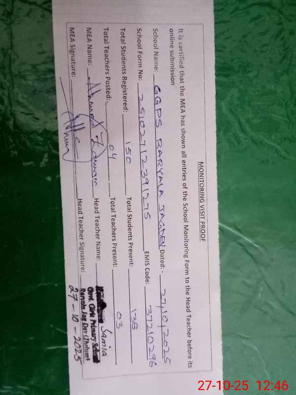 | EMIS Code: 37210296 | Name of School: GGPS RARYALA JAGDEV | |||