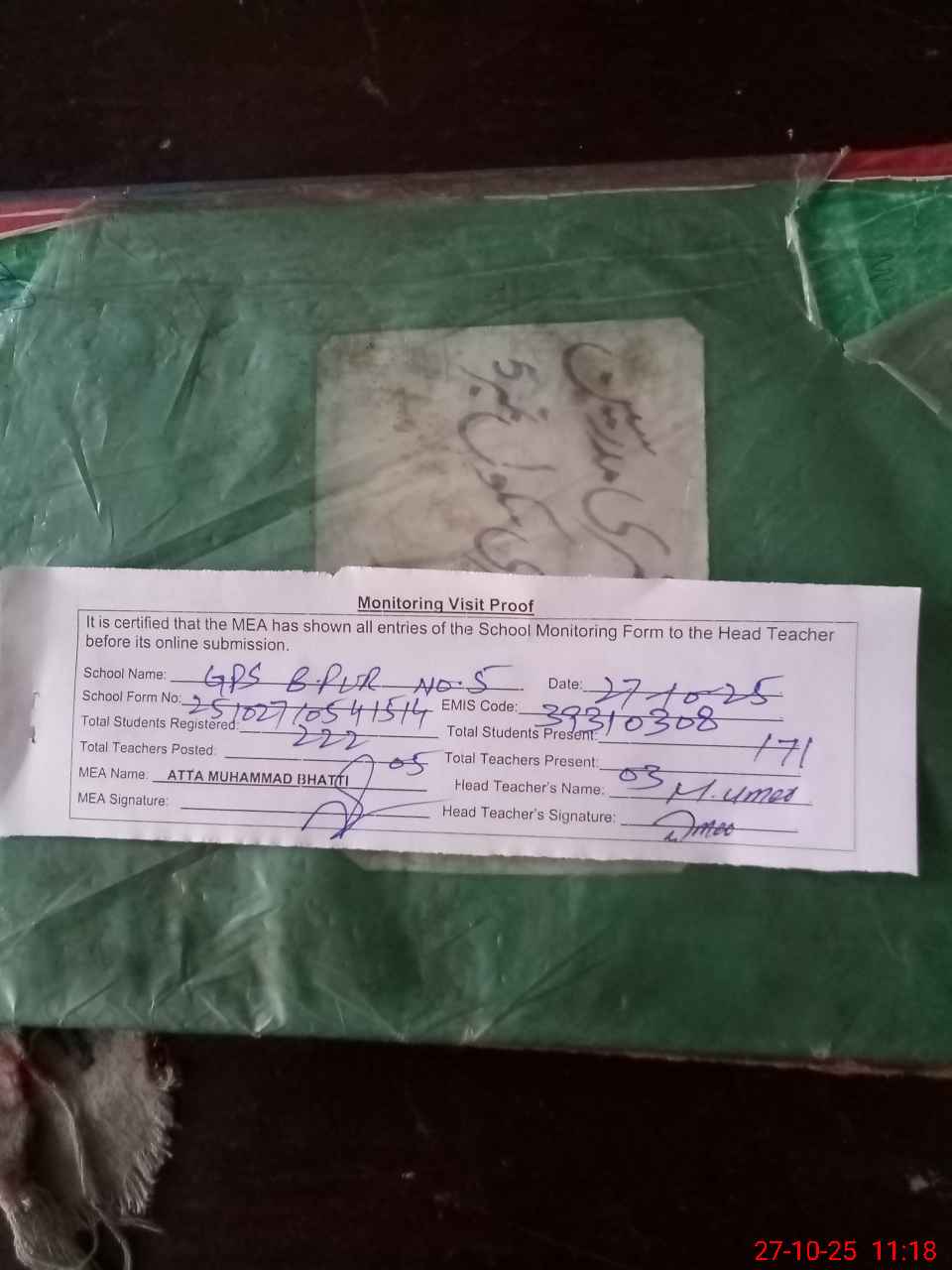 | EMIS Code: 39310308 | Name of School: GPS BASIR PUR NO 5 | |||