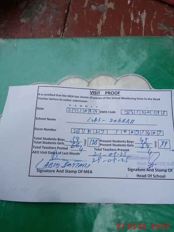 | EMIS Code: 33120195 | Name of School: GPS CHAK 206 RB II | |||