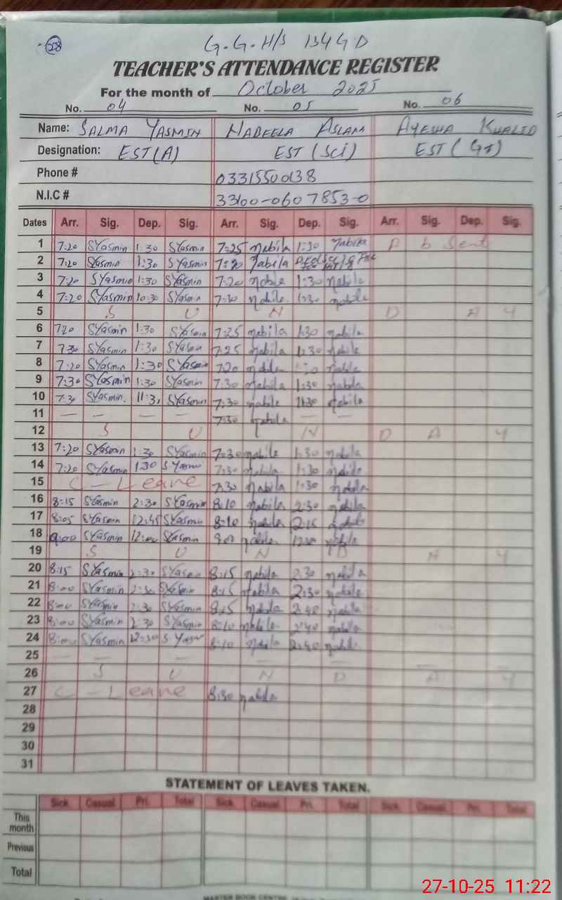 | Name: SH**** BA**** Designation: (School Headmaster's/Headmistress's) SST (SCIENCE ) Phone/Cell Number: 03**** |
