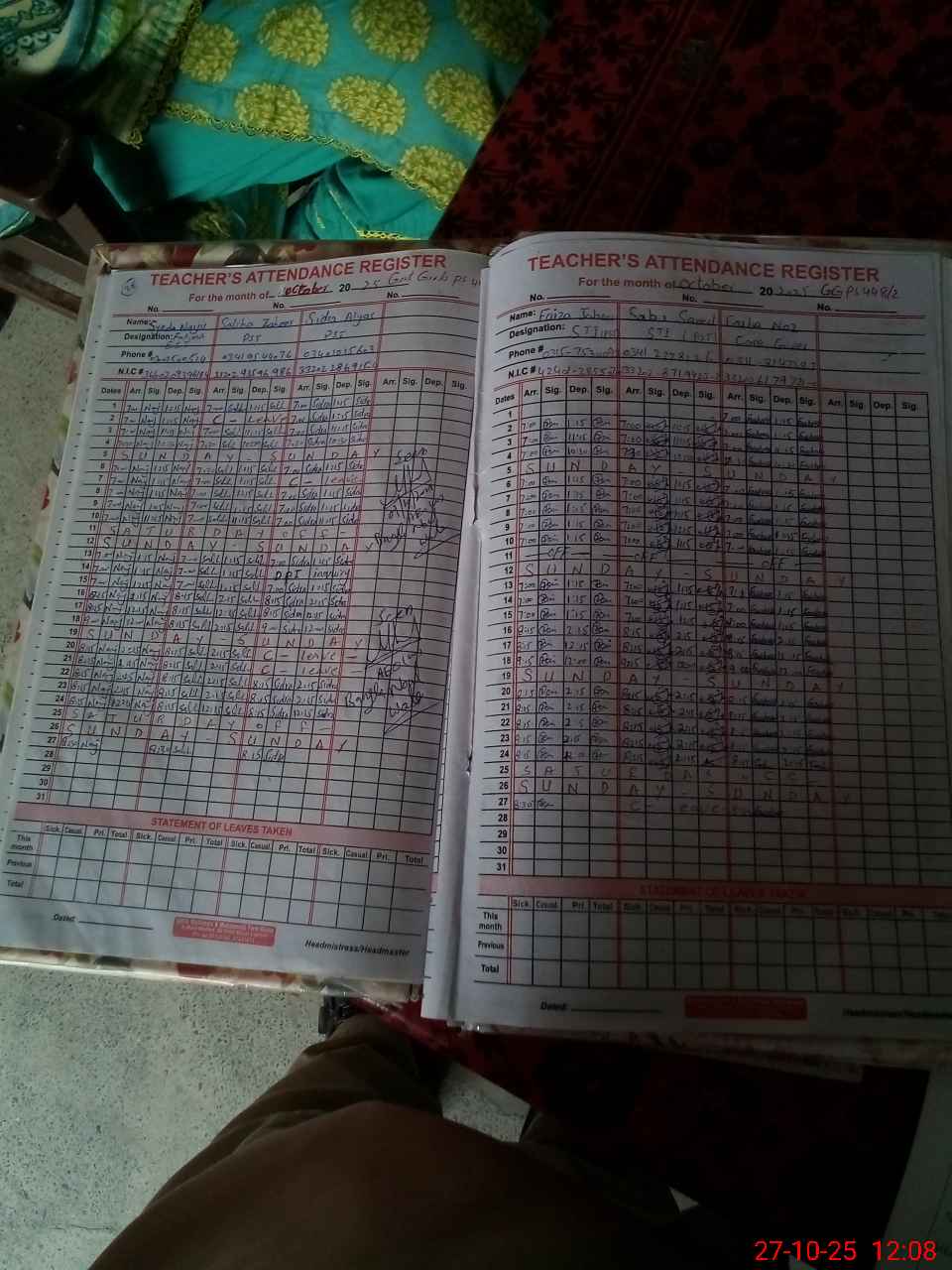 | Name: Sy**** Na**** Fa**** Designation: (School Headmaster's/Headmistress's) EST Phone/Cell Number: 03**** |