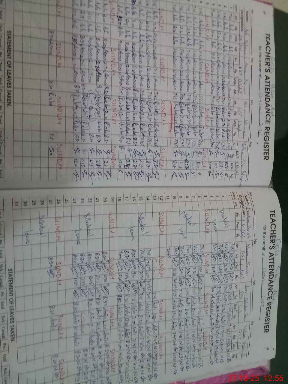 | Leave | Duty | Absent | Maternity | Medical | Ex- Pak |