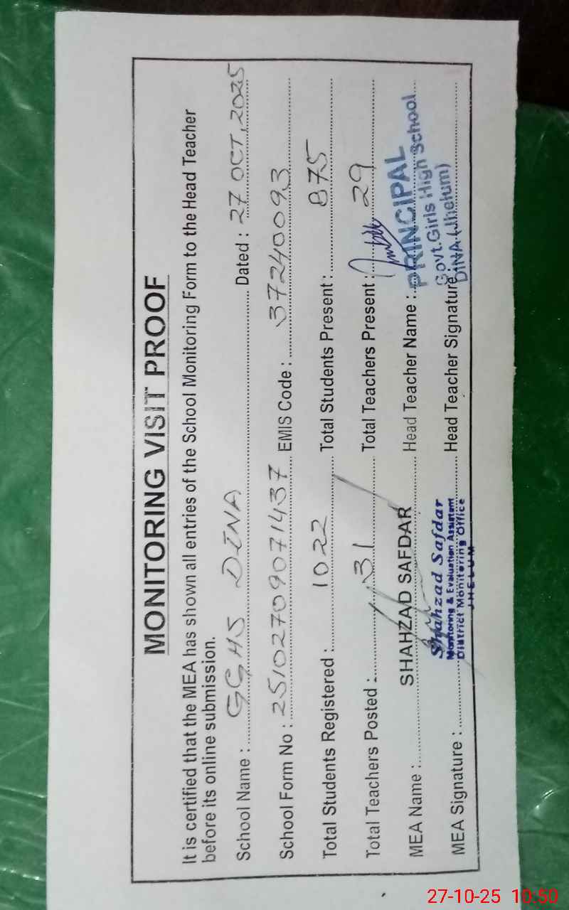 | EMIS Code: 37240093 | Name of School: GGHS DINA | |||