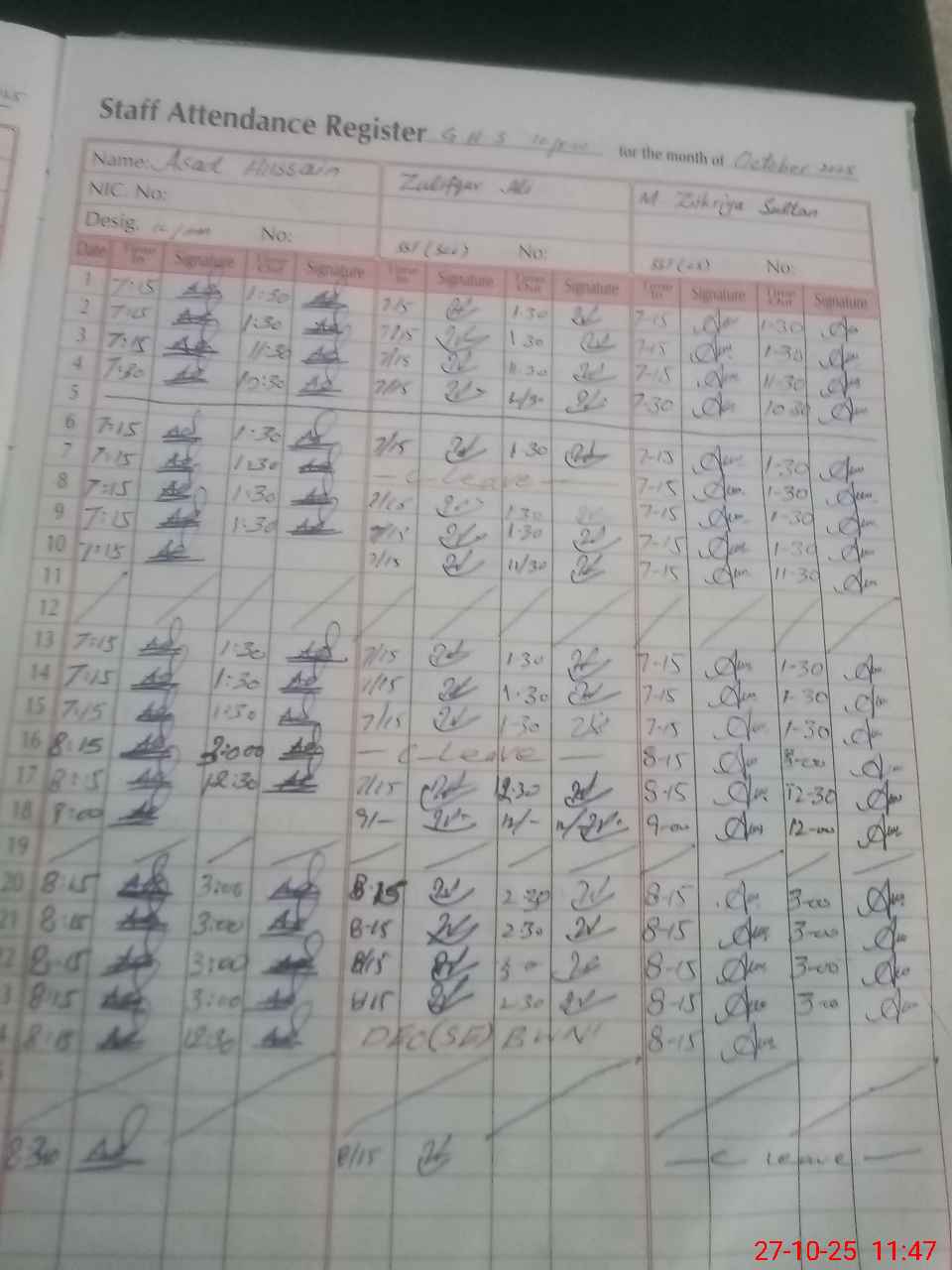 | 31**** | As**** Hu**** | C IV | Regular | 0 | 0 | 0 | 0 | 0 | 0 | 0 | 0 | 0 | Casual |