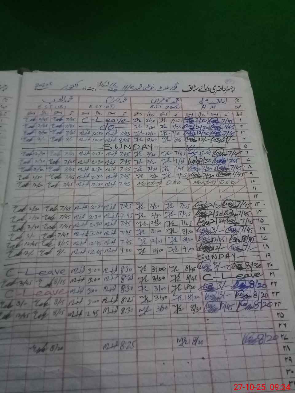 | 35**** | Mu**** Al**** | PST | Regular | 2 | 0 | 0 | 0 | 0 | 0 | 0 | 0 | 2 | Casual |