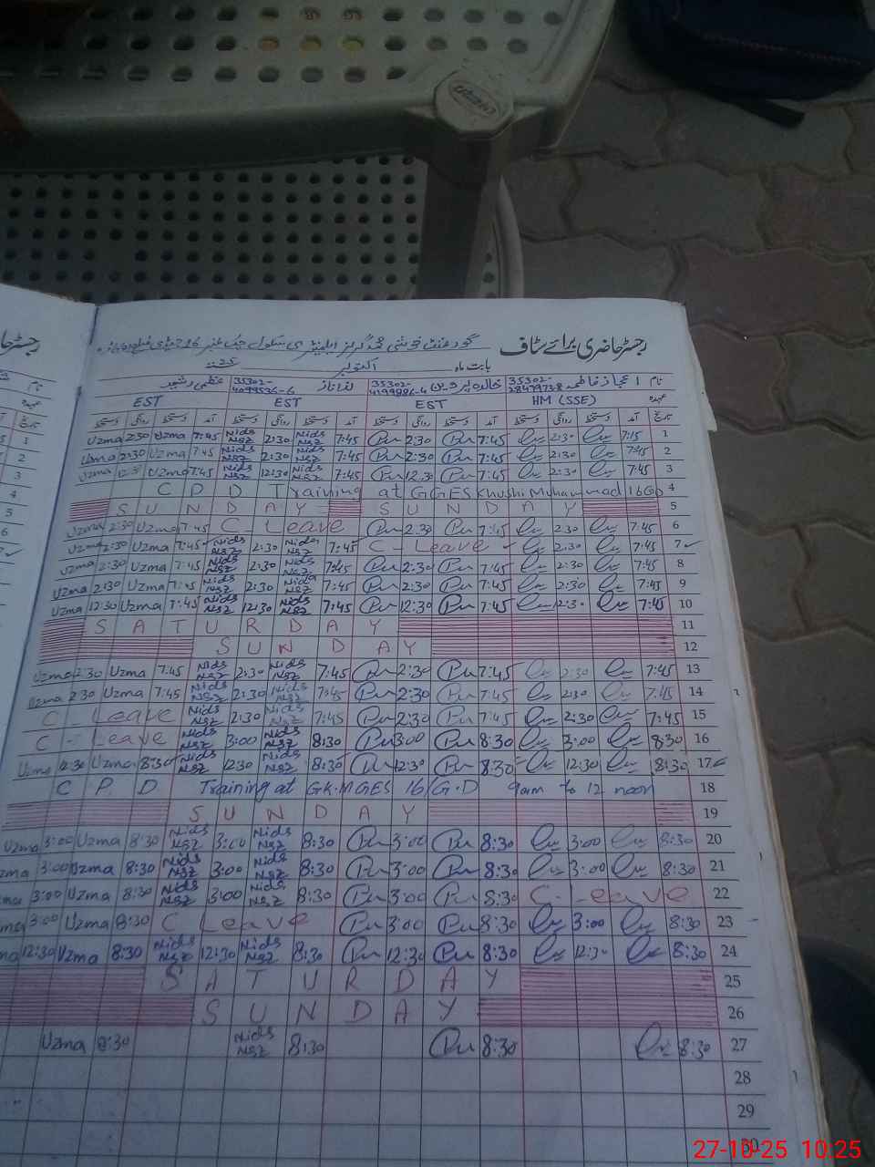 | 35**** | Gh**** Al**** | CHOKIDAR | 2 | 0 | 0 | 0 | 0 | 0 | 0 | 0 | 2 | Casual | |