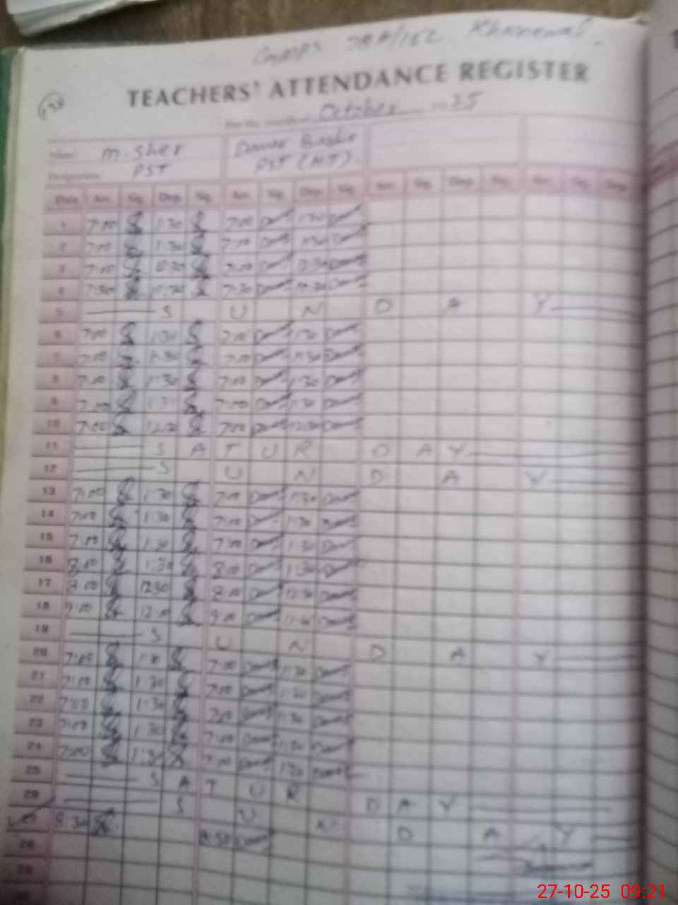 | Name: Da**** Ba**** Designation: (School Headmaster's/Headmistress's) PST Phone/Cell Number: 03**** |
