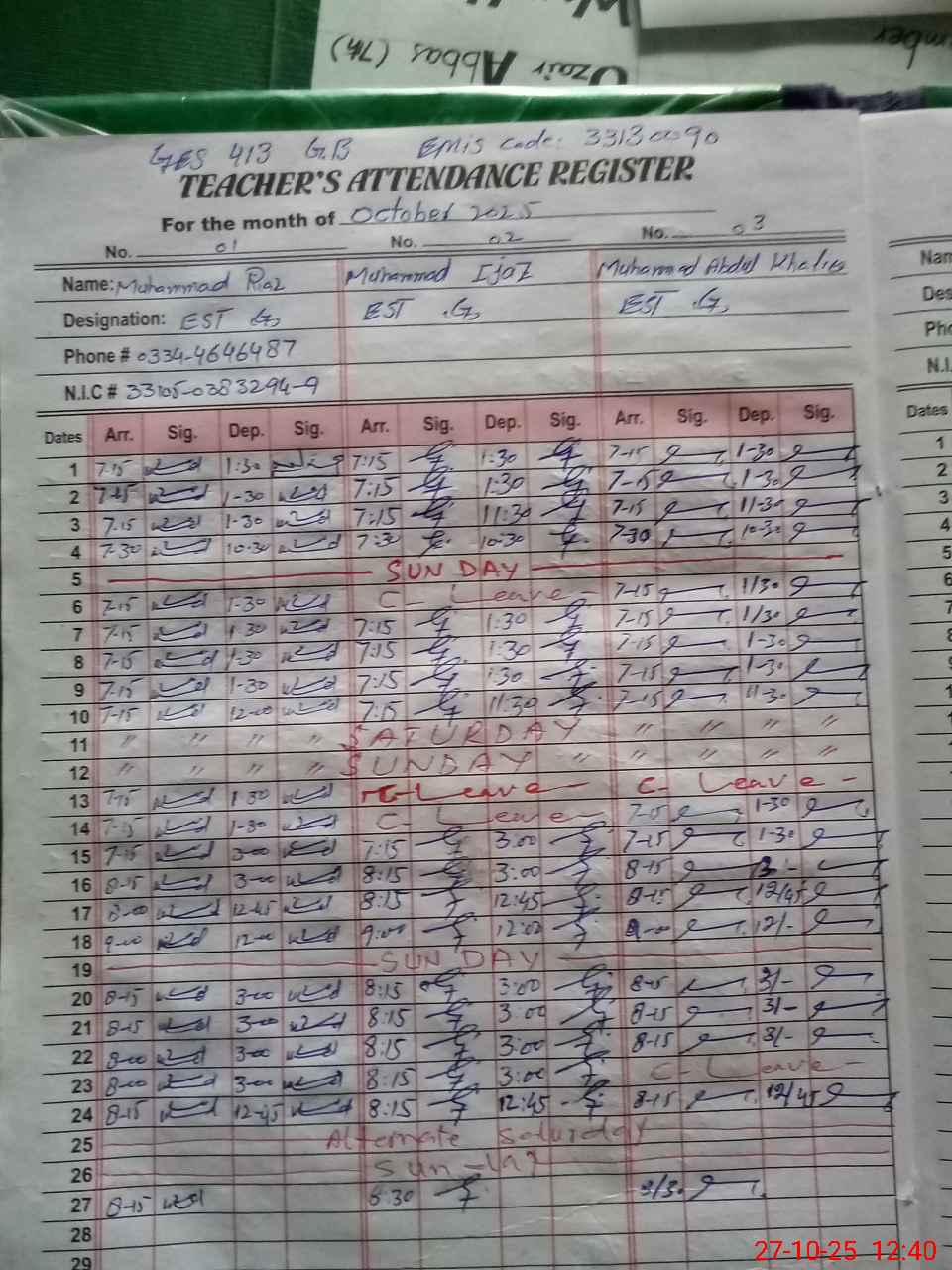 | Name: Mu**** RI**** Designation: (School Headmaster's/Headmistress's) EST (GENERAL) Phone/Cell Number: 03**** |