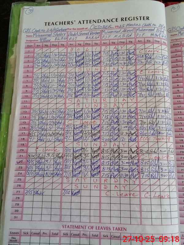| Name: MU**** SH**** Designation: (School Headmaster's/Headmistress's) PST/PTC/JV Phone/Cell Number: 03**** |