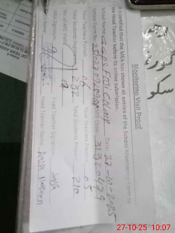 | EMIS Code: 31320479 | Name of School: GGPS FOJI COLONY | |||