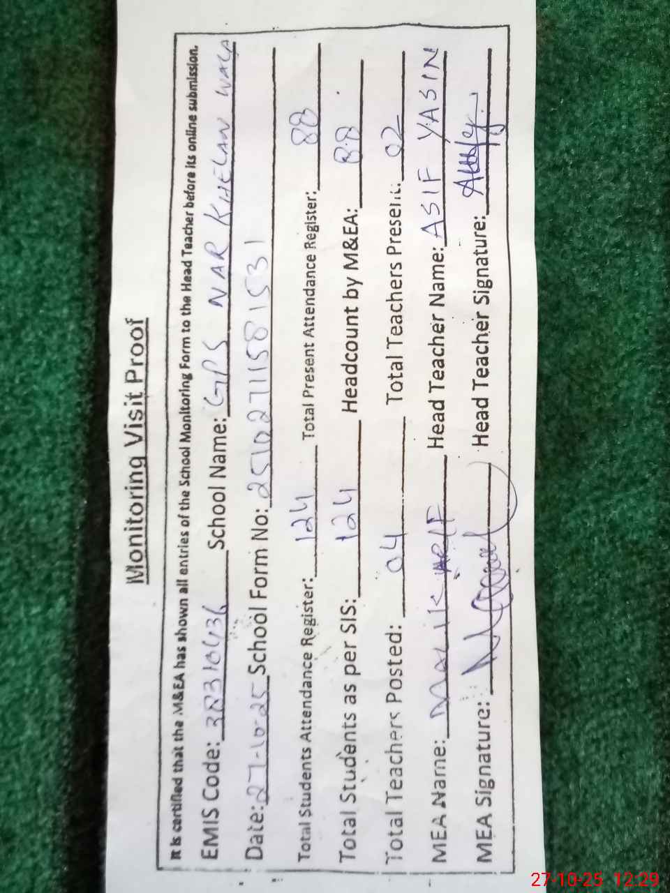 | EMIS Code: 38310436 | Name of School: GPS NAR KHELAN WALA | |||