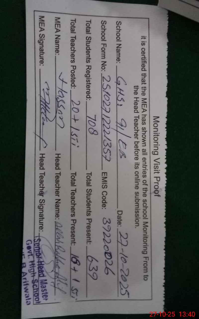 | EMIS Code: 39220026 | Name of School: GHS 91/EB | |||