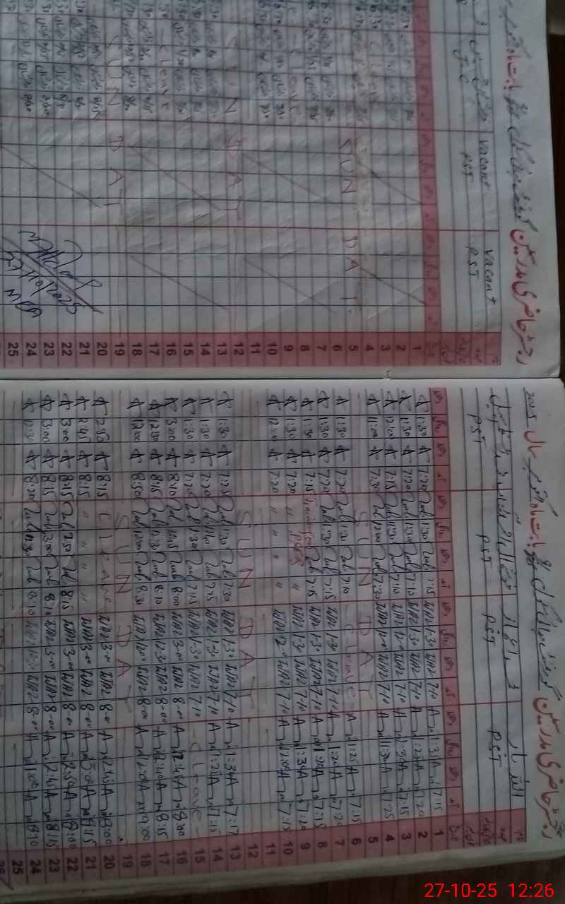 | CNIC | Full Name | Designation | R/C | Absence During Last Calender Month |