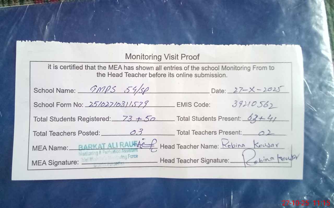 | EMIS Code: 39210562 | Name of School: GMPS 54/SP | |||