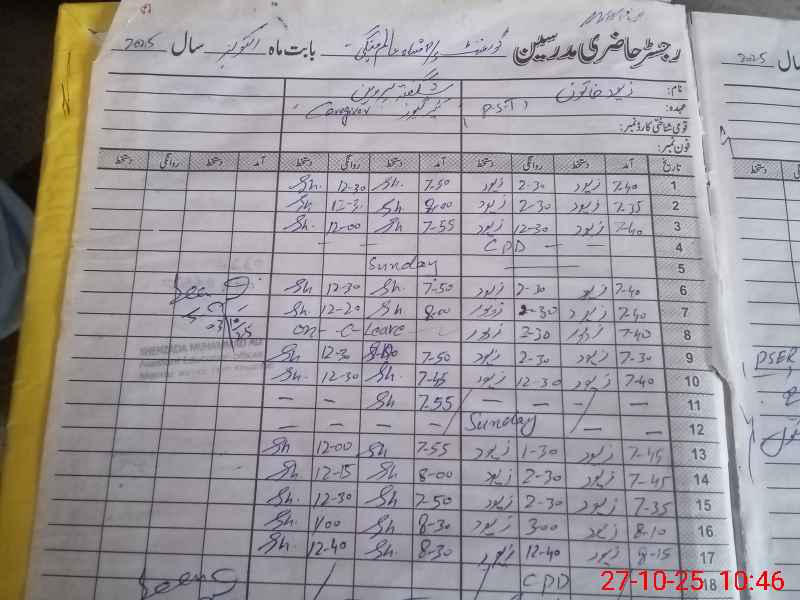 | CNIC | Full Name | Designation | R/C | Absence During Last Calender Month |