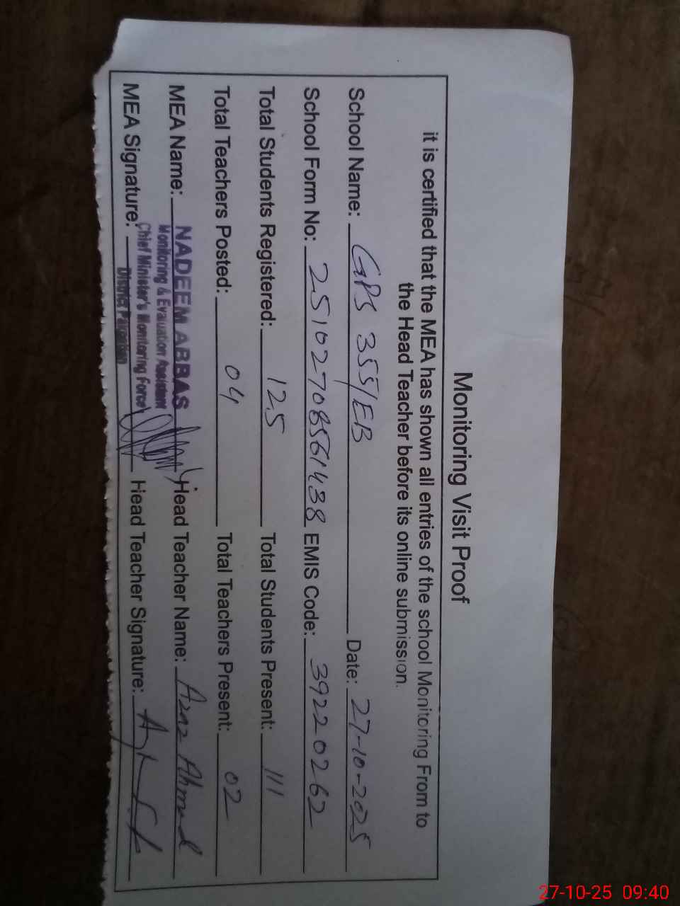 | EMIS Code: 39220262 | Name of School: GPS 355 EB P.O 351 EB | |||