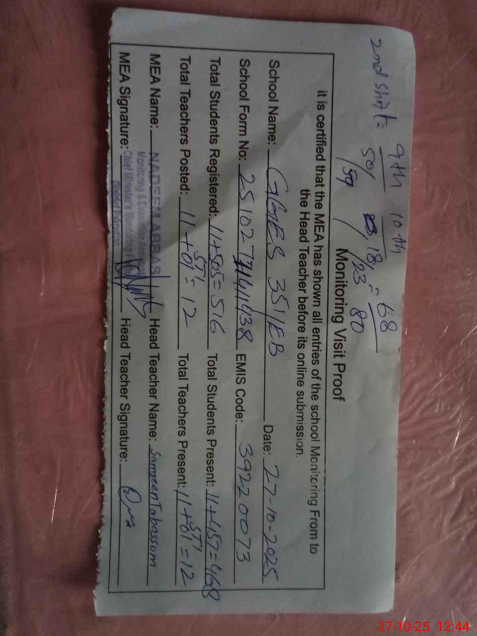 | Certified that this School was Inspected by the Undersigned MEA/DMO Today and the Information Stated Above is as Per Record. | |||||