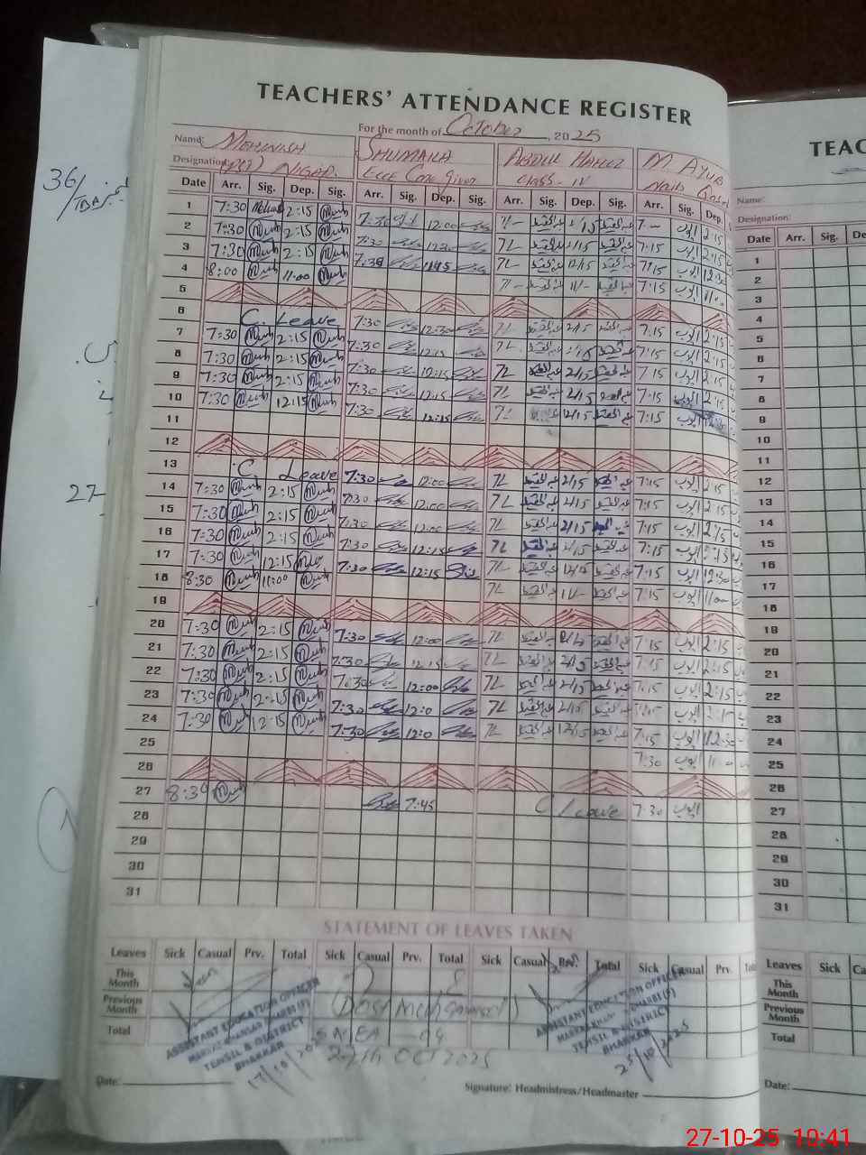 | 38**** | Ab**** Ha**** | CHOWKIDSR | Regular | 0 | 0 | 0 | 0 | 0 | 0 | 0 | 0 | 0 | Casual |