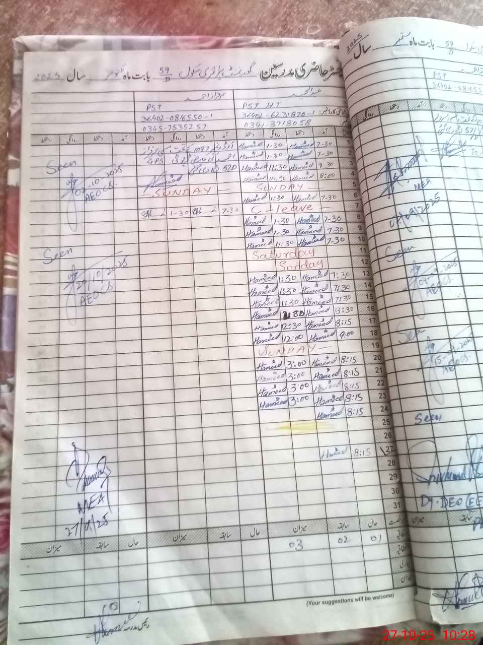 | Name: AB**** HA**** Designation: (School Headmaster's/Headmistress's) PST Phone/Cell Number: 03**** |