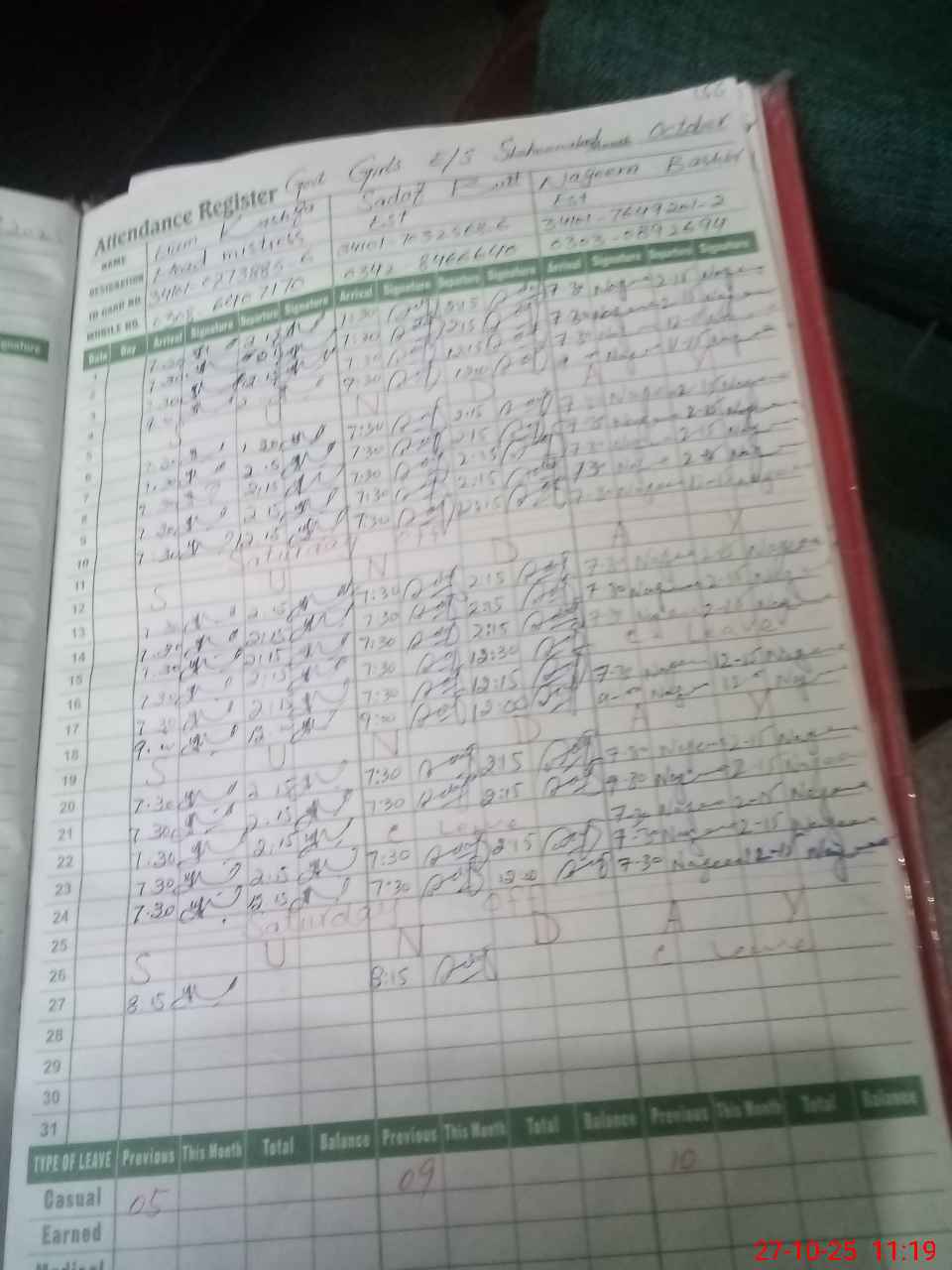 | 34**** | Za**** UlAb**** | JC | 0 | 0 | 0 | 0 | 0 | 0 | 0 | 0 | 0 | Absent (Un-Authorized) | |